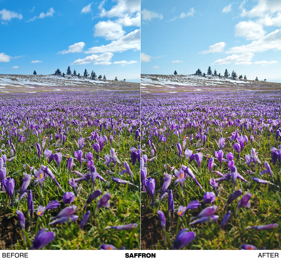 - SAFFRON → a subtle preset, that works best on landscape shots. Natual looking preset.
